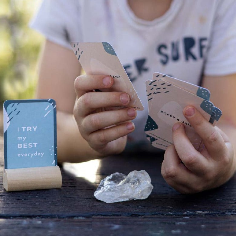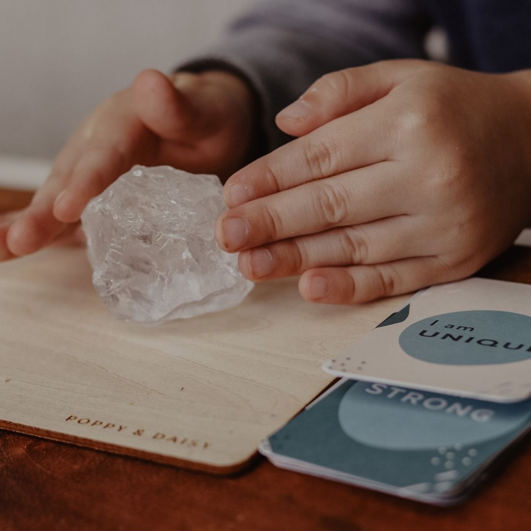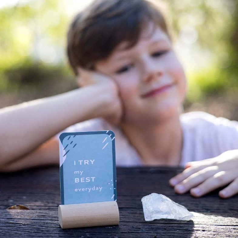 The energy from clear quartz crystals helps with focus, setting intentions and reaching full potential. Help children begin simple mindful practises from a young age with this kit, affirmations, wooden stand and crystal.